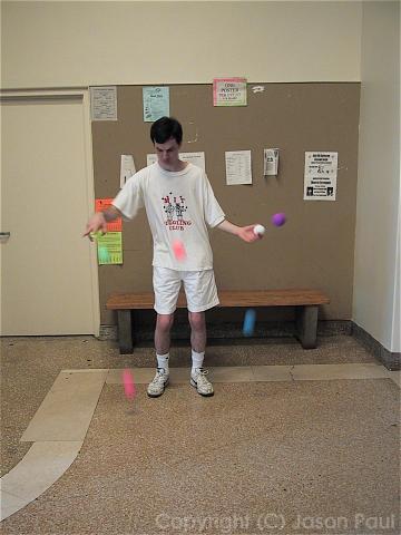 Brian bouncing 7 balls. Psst... the purple one's trying to escape...