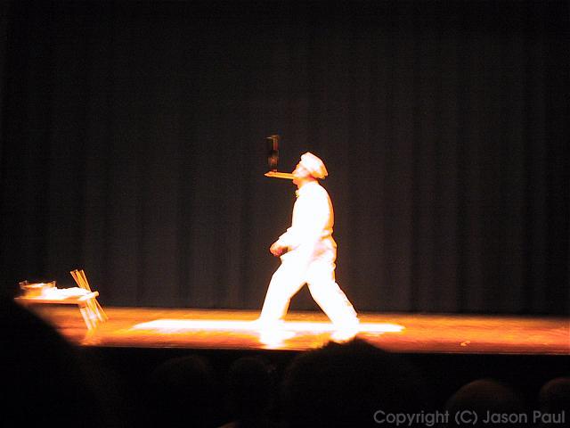 A bottle balanced and spinning on a mouth stick. Very, very cool.